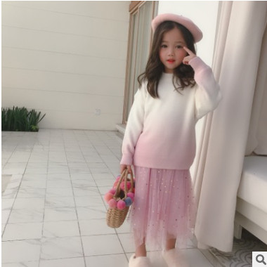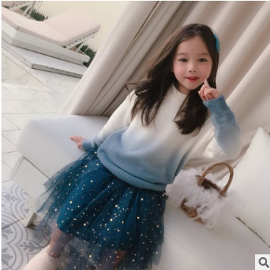 小尾巴原創定制 19秋女童漸變色毛衣+亮片星星裙套裝 軟糯質感