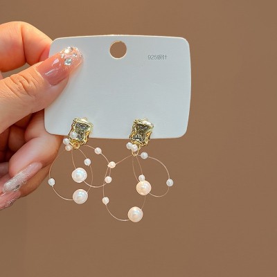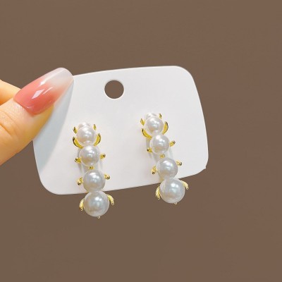 銀針韓版氣質幾何珍珠耳環 輕奢高級感蝴蝶花朵耳飾復古珍珠耳釘
