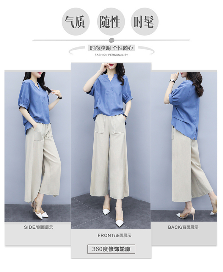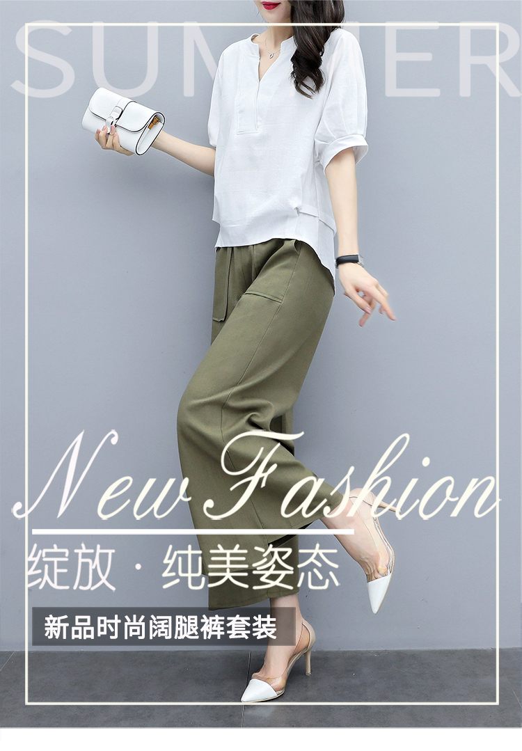棉麻休閑套裝女2021夏季新款韓版洋氣寬松顯瘦亞麻闊腿褲裙兩件套