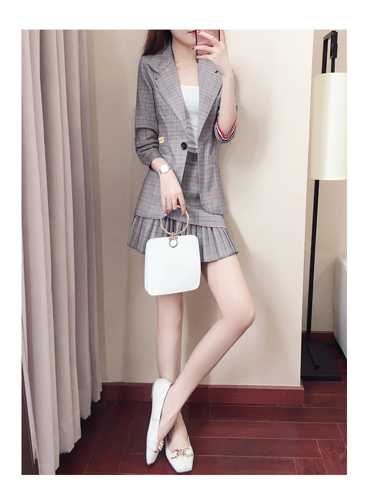 格子小西裝套裝女2020早秋裝新款名媛氣質(zhì)女神百褶裙子兩件套洋氣