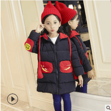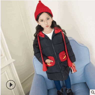 18冬季新款兒童羽絨棉服中大童加厚韓版女童連帽羽絨棉服中長(zhǎng)款外