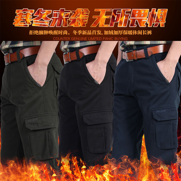 2018新款冬季男士戶外加絨保暖休閑褲新款長褲大碼多袋褲9123加絨