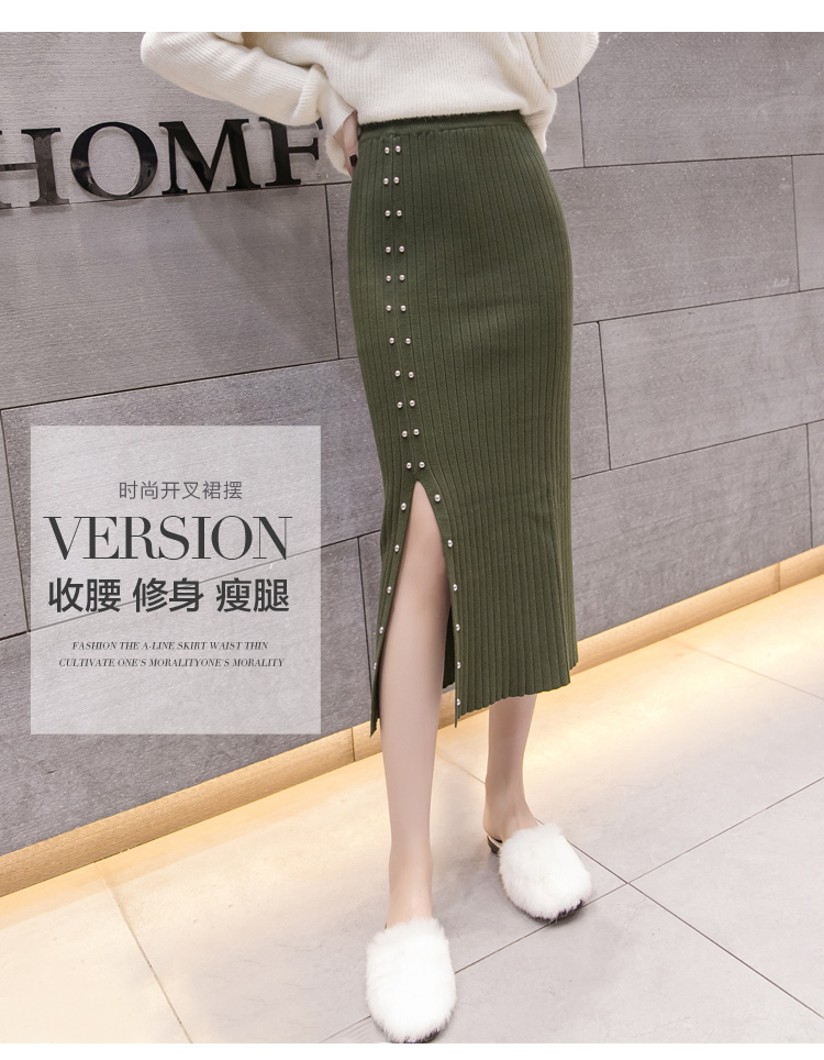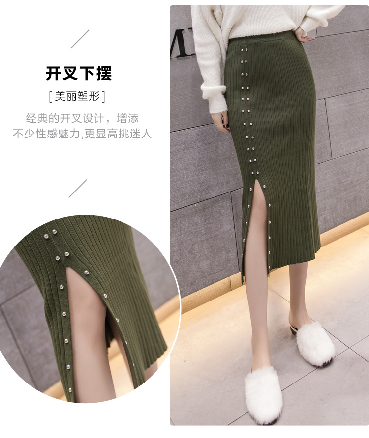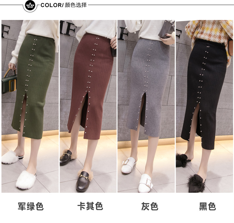 實拍2018秋季新款韓版高腰中長款開叉針織包臀半身裙A字裙短裙女