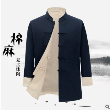 批發中老年唐裝男秋薄男士棉麻休閑外套中年復古漢服兩面穿衣服男