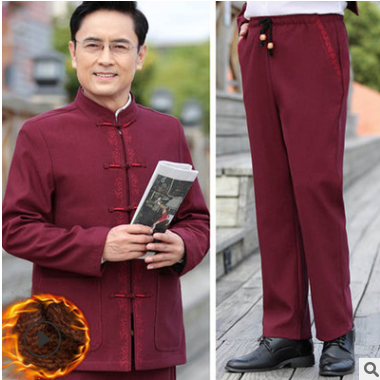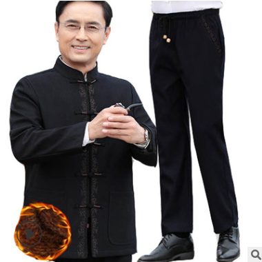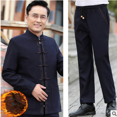 直銷冬季唐裝男棉衣中老年加厚棉服中國風加絨中式棉襖棉褲兩件套