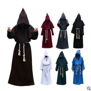 萬圣節(jié)cosplay服裝 古裝修士袍僧侶服巫師服牧師中世紀(jì)服批發(fā)