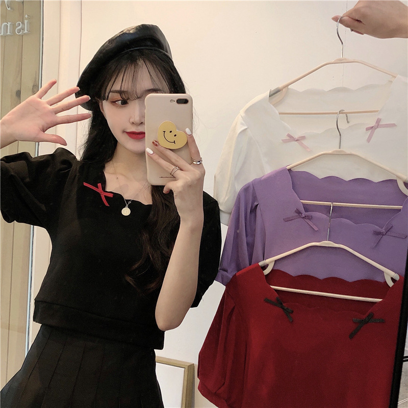首頁(yè) > 供應(yīng)產(chǎn)品 > 廠家批發(fā)設(shè)計(jì)感方領(lǐng)短袖t恤女夏裝2021年新款洋氣蝴蝶結(jié)短款上衣