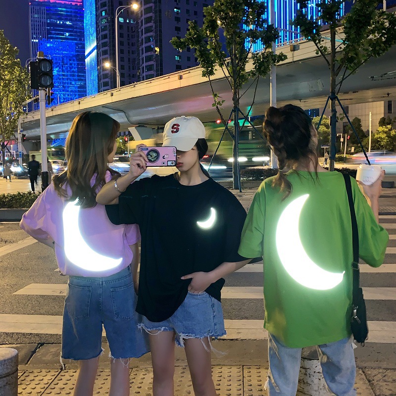 夏裝韓版寬松個性反光短袖T恤女士2019新款學生上衣ins潮流情侶裝