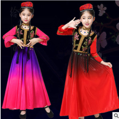 舞蹈新疆新款演出服兒童新款裙維族裙幼兒園新款服六一兒童演出服