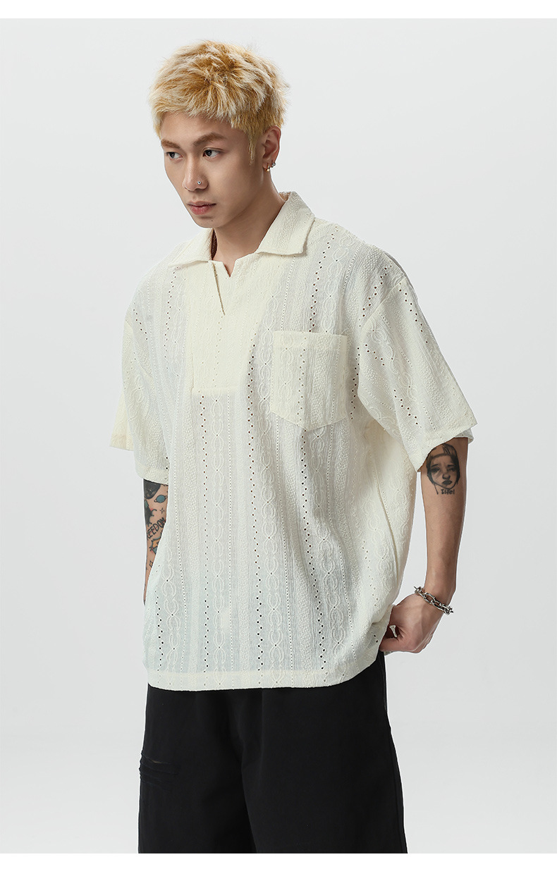 首頁(yè) > 供應(yīng)產(chǎn)品 > 日系復(fù)古精致提花鏤空高級(jí)感肌理短袖POLO衫夏季休閑老錢風(fēng)半袖男