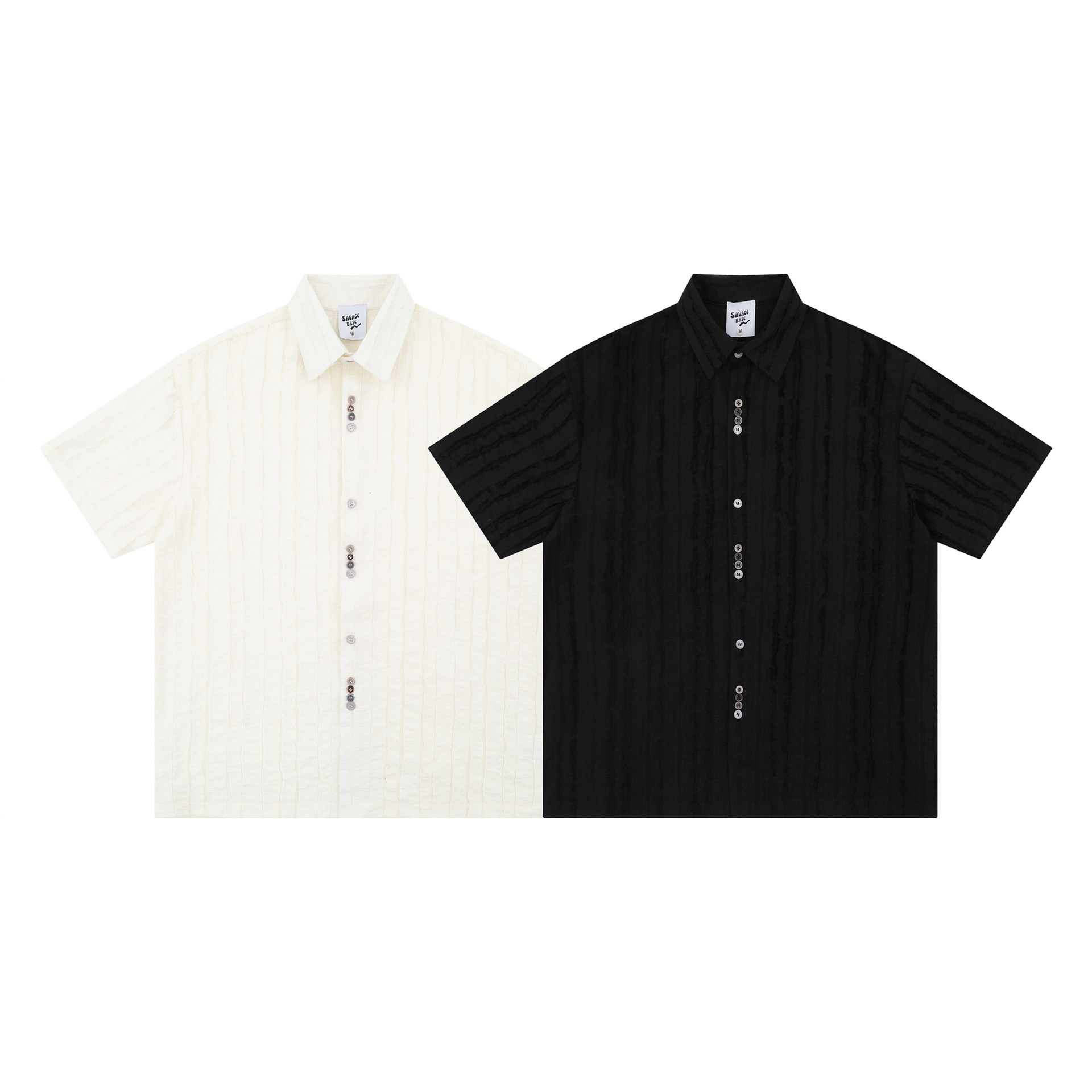 慵懶老錢風(fēng)精致小眾褶皺肌理襯衫2025夏季新復(fù)古情侶寬松半袖襯衣