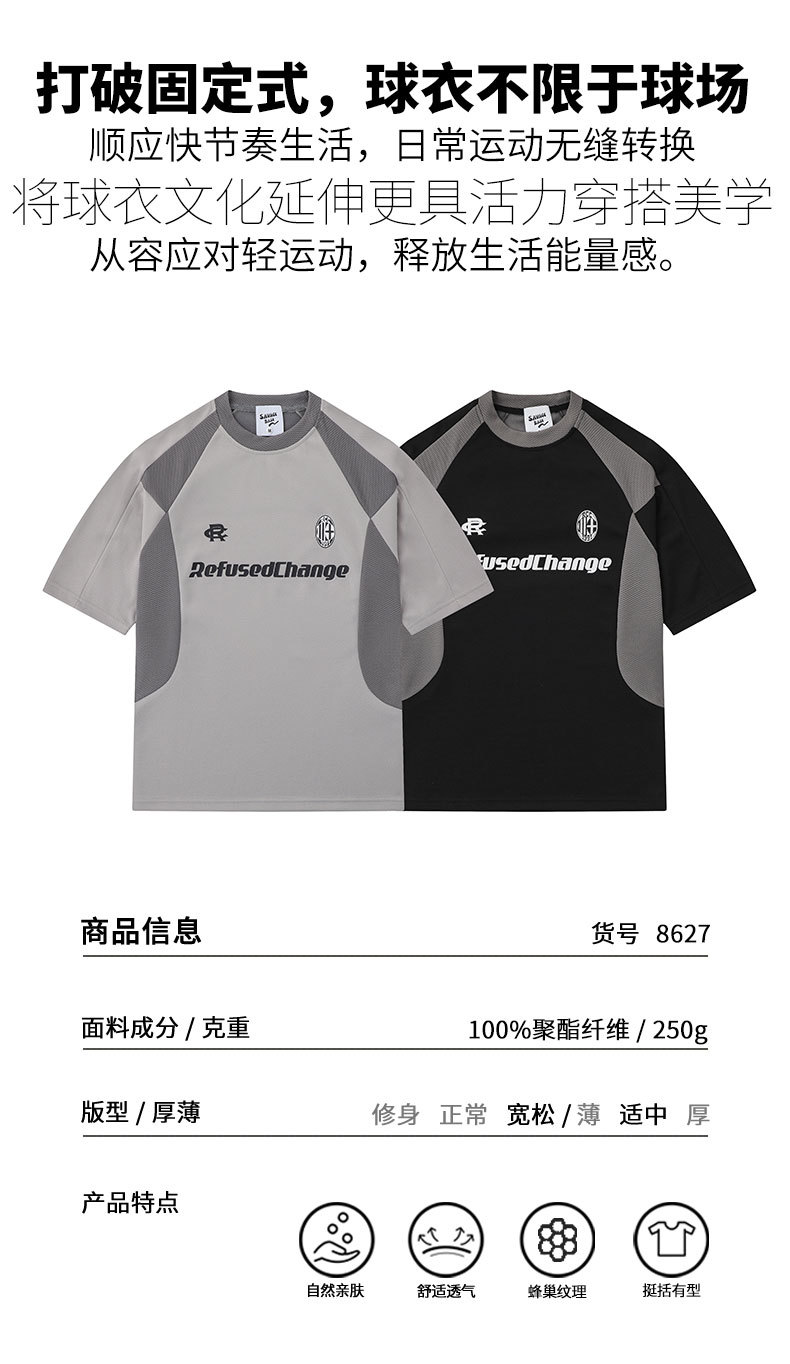 首頁(yè) > 供應(yīng)產(chǎn)品 > 美式運(yùn)動(dòng)橄欖球衣透氣珠地仿棉拼接廓形插肩短袖T恤男女跨境潮牌