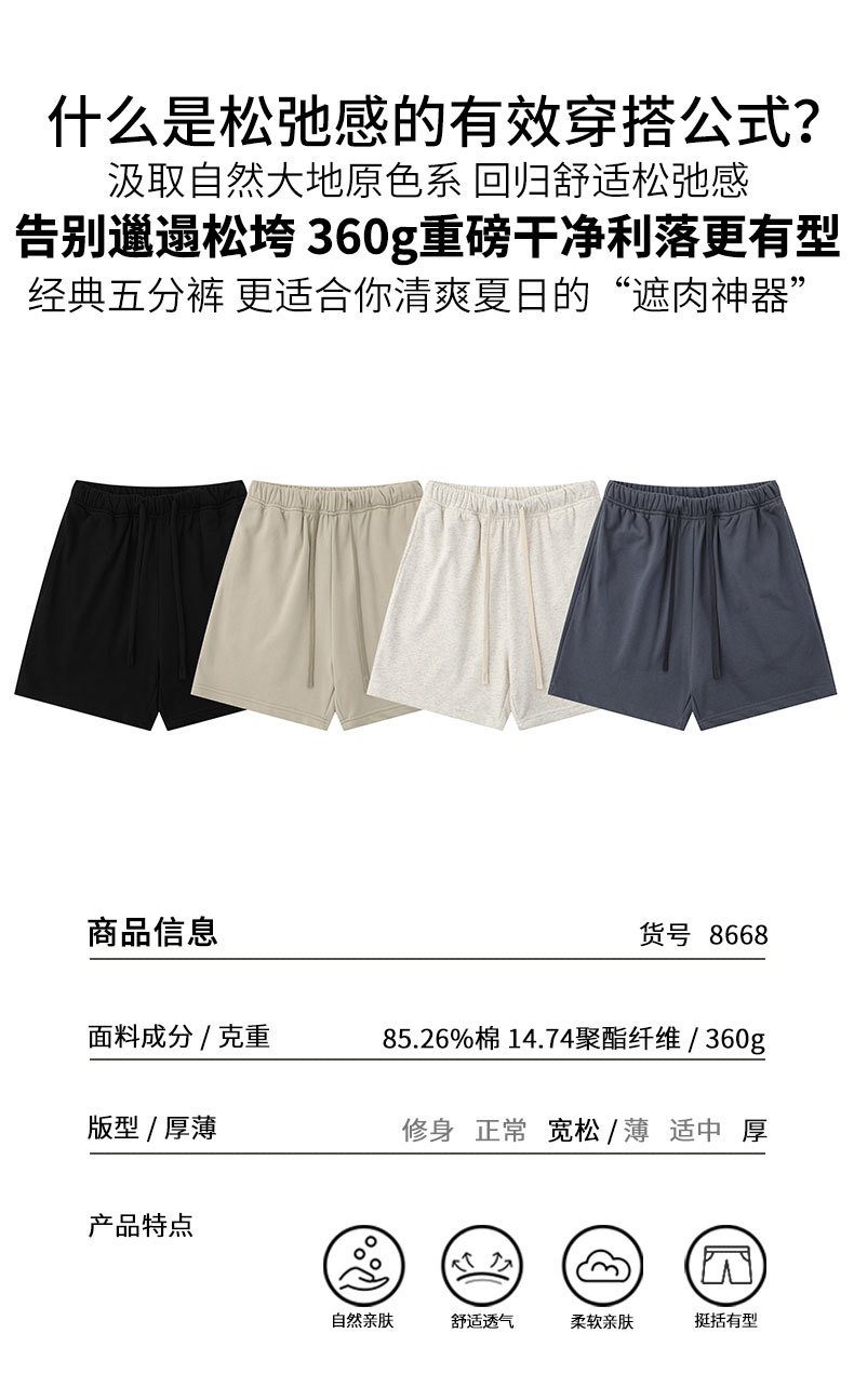 重磅360g純色百搭短衛褲春夏新品運動百搭男式五分褲子基礎款批發