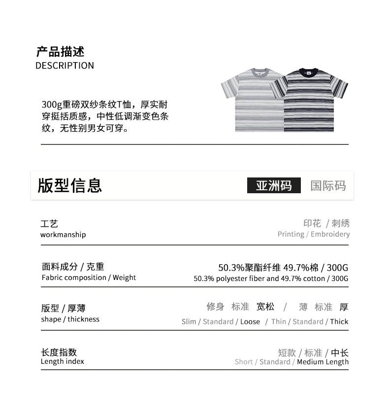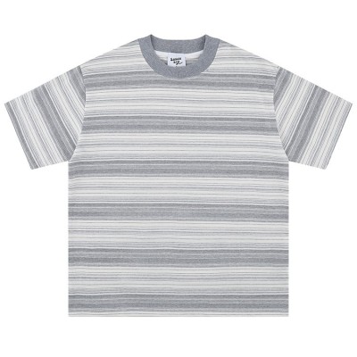 日系復古漸變撞色條紋圓領T恤ins夏季短袖休閑寬松潮牌男女基礎款