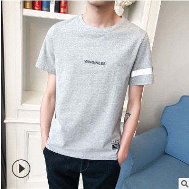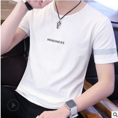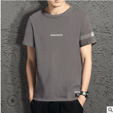 廠家直銷2019夏季新款短袖T恤男純棉短袖圓領寬松反光條半袖t恤男