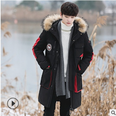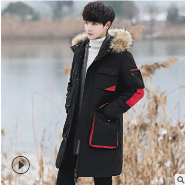 2019冬新款休閑絨羽絨服男中長款冬季韓版青少年加厚連帽男士外套