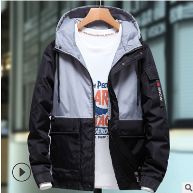 冬季新款男加絨外套百搭修身休閑潮流青年連帽棒球服夾克