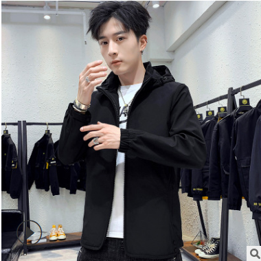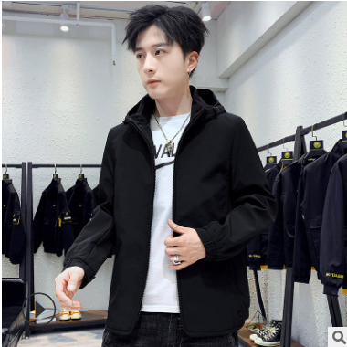 廠家直銷2019春秋季新款青年男士外套薄休閑潮帥氣連帽修身夾克衫