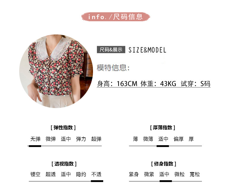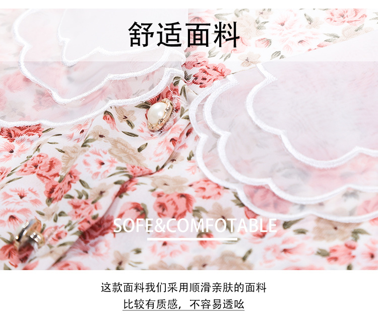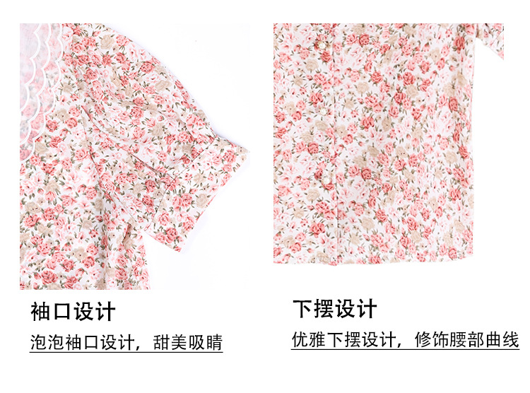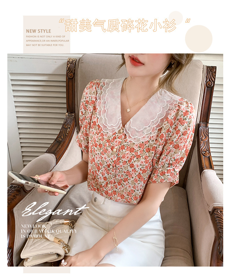 實拍2021夏季小清新娃娃領碎花襯衫女百搭寬松泡泡袖印花上衣