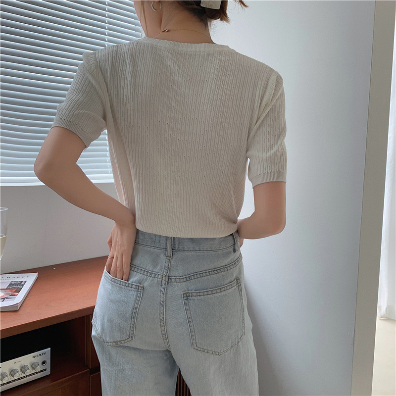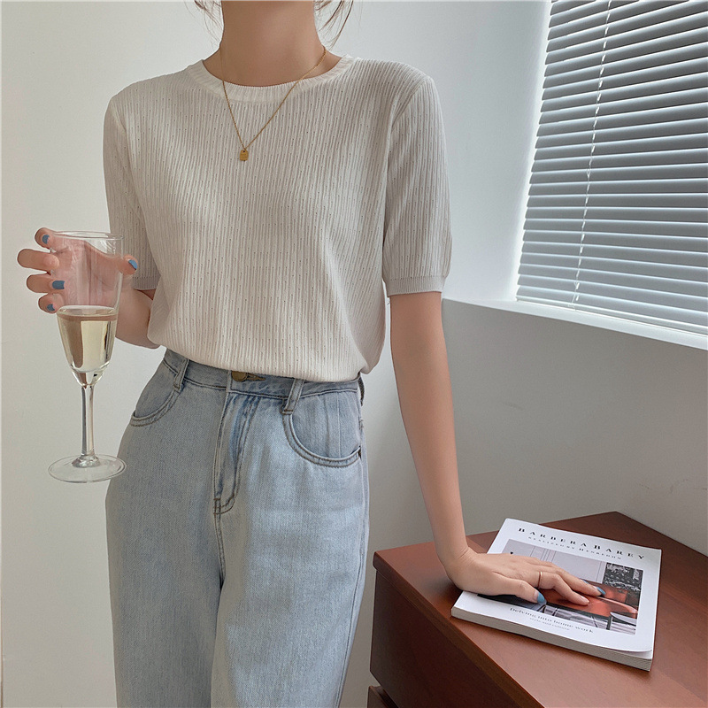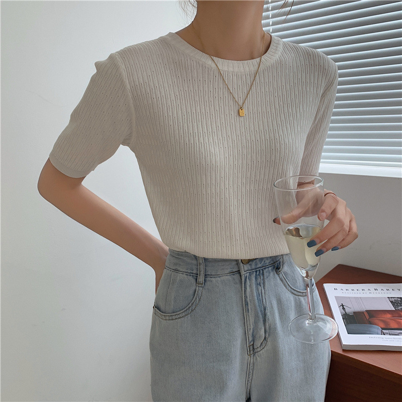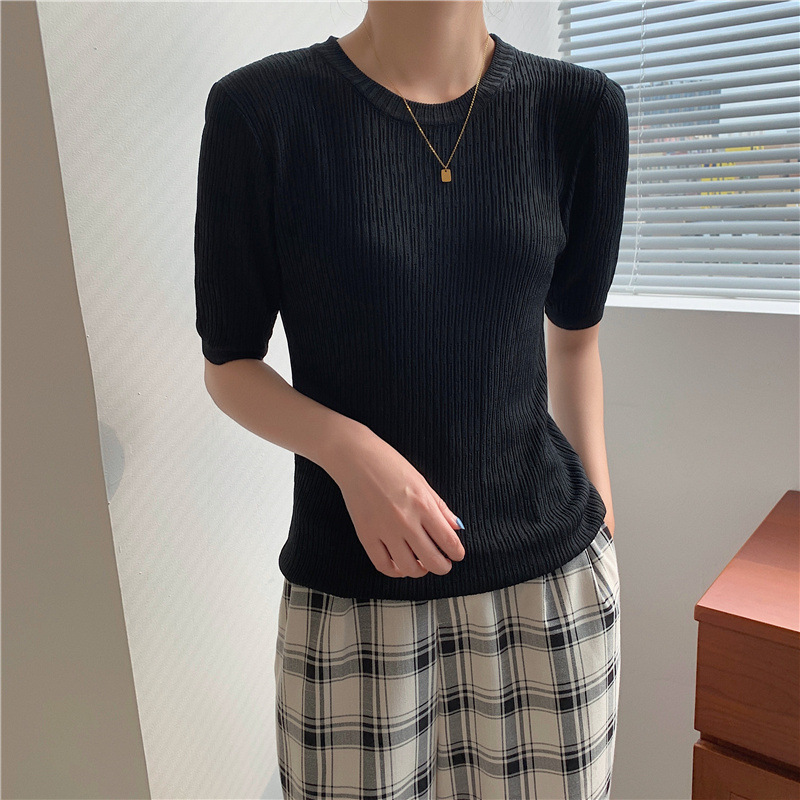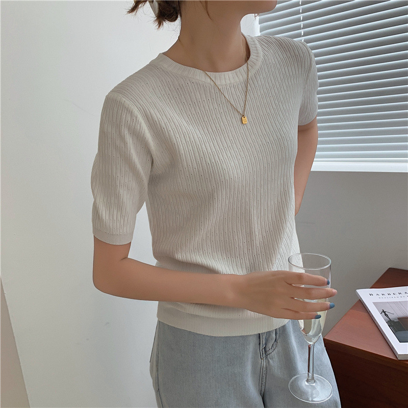 2021夏新款修身圓領內搭打底衫薄款豎條紋短袖t恤百搭ins風