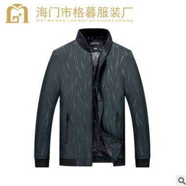 秋冬新品中老年夾克外套 男士休閑印花上衣純色立領爸爸裝2019