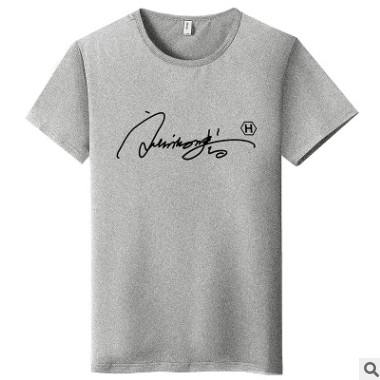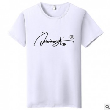 新款2019夏季休閑大碼男裝印花滌綸套頭短袖青春流行領男式T恤