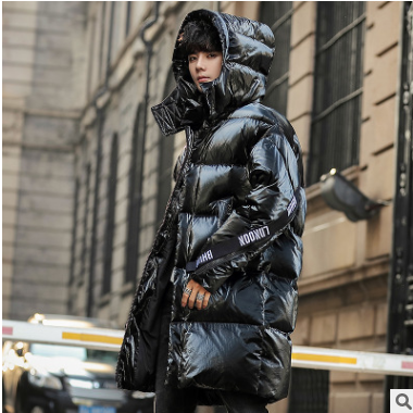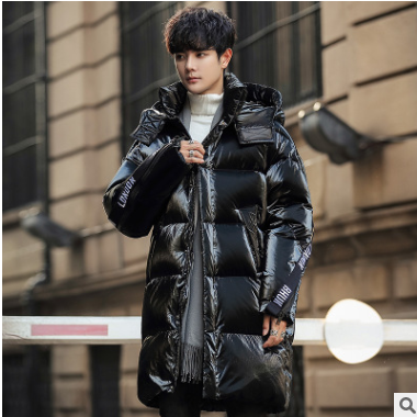 冬季時尚潮牌羽絨服男中長款帥氣連帽外套白鴨絨寬松加厚保暖外衣