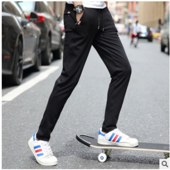 春季男式休閑褲韓版男裝修身小腳運動褲男潮流針織衛褲男士長褲子