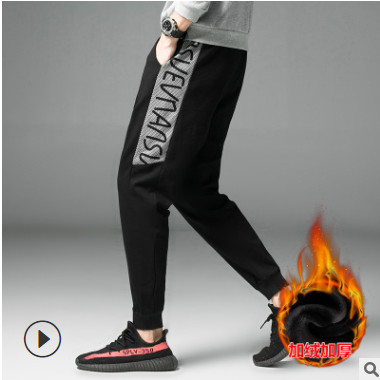 冬季運動衛褲男潮牌加絨加厚褲子男棉褲秋冬款外穿潮流小腳休閑褲