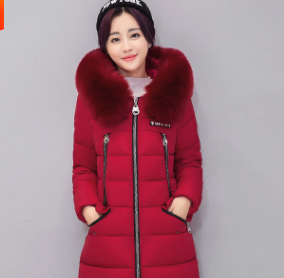 一件代發2016冬季新款修身韓版大毛領女裝棉衣女中長款加厚外套潮