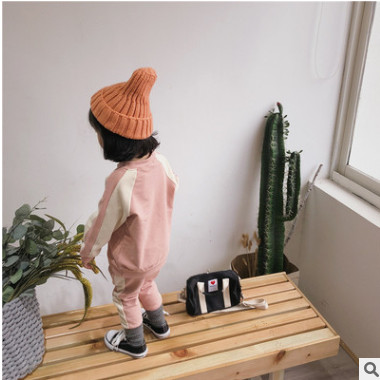 2019秋冬新款兒童長袖衛衣套裝寬松秋裝男女童套頭運動撞色兩件套