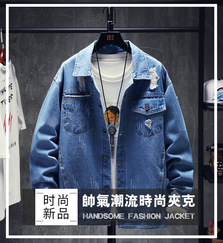 牛仔夾克外套2019秋季新款毛邊牛仔外套男青少年夾克男士休閑外套