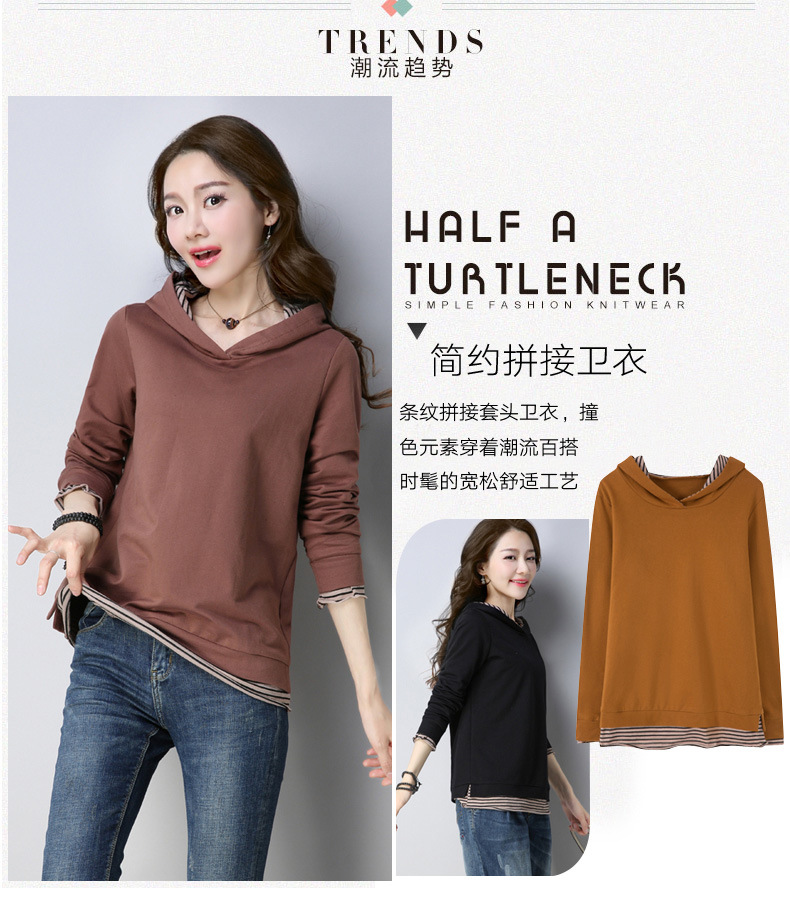 打底衫女長袖2018春秋裝新款女裝韓版寬松顯瘦t恤百搭假兩件上衣