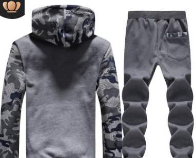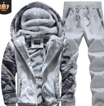 亞馬遜外貿(mào)加絨加厚衛(wèi)衣套裝開衫大碼連帽大外套男裝跨境專供套裝