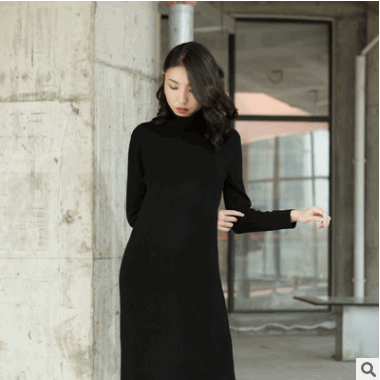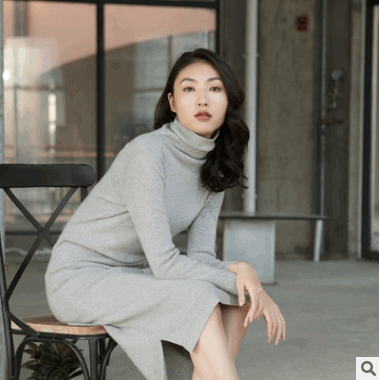 針織毛衣100%山羊絨中性感直筒顯高顯瘦不顯肚打底裙寬松高領(lǐng)女