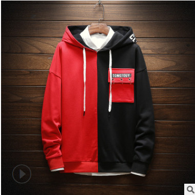 衛衣男套頭連帽 蝦皮秋裝新款 男士拼接長袖運動帽衫潮