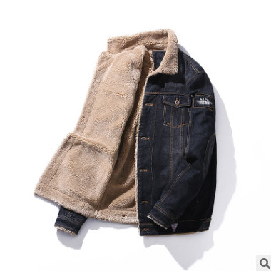 廠家直銷秋冬季男士牛仔純棉水洗加絨加厚外套大碼休閑百搭夾克男