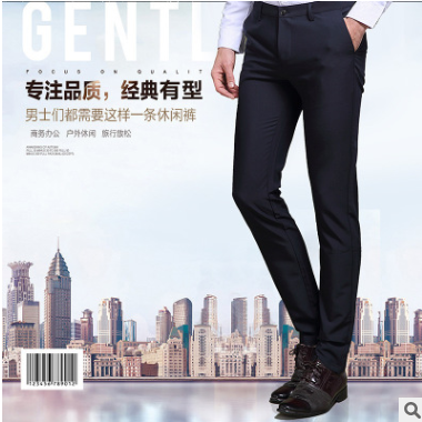 商務(wù)休閑直筒西裝褲男士便裝休閑褲修身舒適百搭免燙長(zhǎng)褲一件代發(fā)