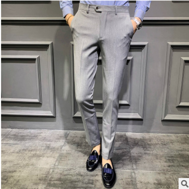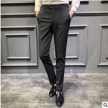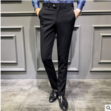 2019新款西褲男士修身型黑色西裝褲商務休閑寬松直筒西服小腳褲子