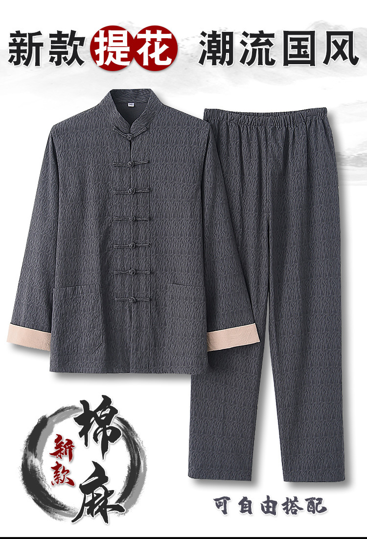 春秋新款唐裝男 中老年潮牌復古中國風 青年中式男裝長袖棉麻套裝