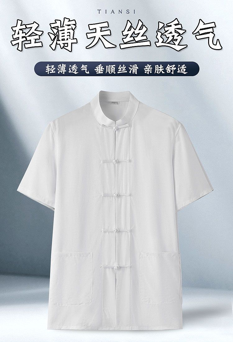 中老年唐裝男夏裝短袖上衣新中式夏季薄款中國風天絲襯衫夏天涼感