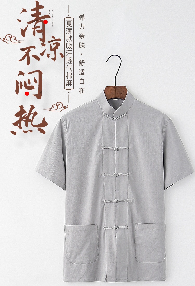 唐裝男夏季潮牌復古中國風薄款棉麻彈力短袖上衣中式男裝亞麻半袖