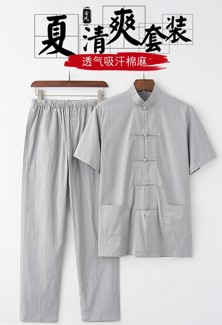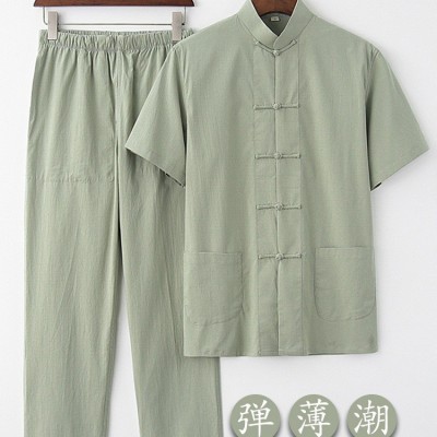 中國風唐裝男青年新中式男裝男士棉麻套裝古風夏季彈力短袖半袖
