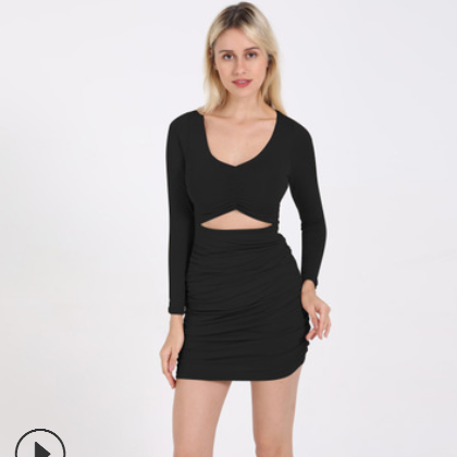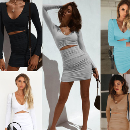 2019秋冬新品長袖性感V領(lǐng)修身連衣裙 歐美亞馬遜Wish跨境爆款8908