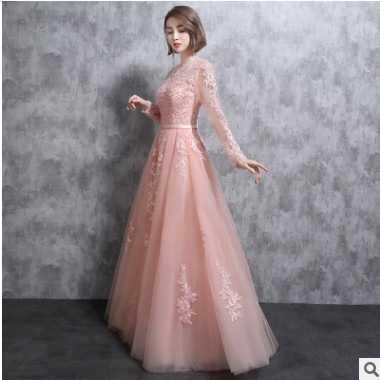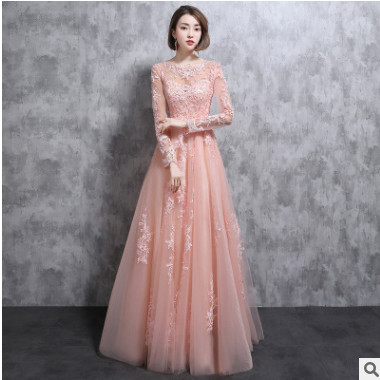 長袖蕾絲仙女裙 廠家直銷束腰晚宴禮服女 過年聚會長裙女