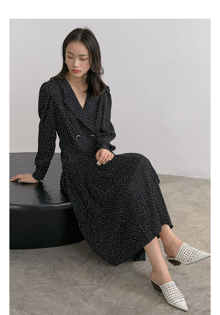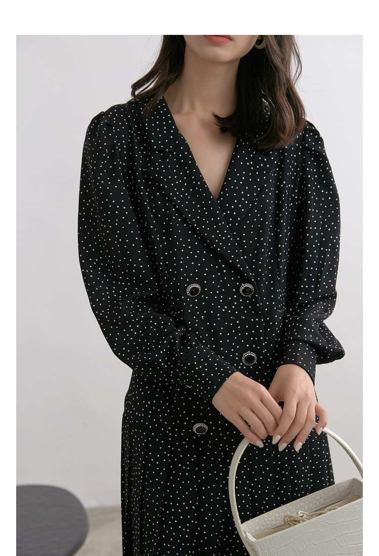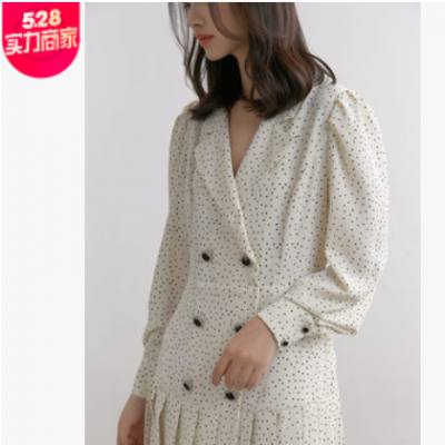廣州宸致服飾UUS2020新款波點(diǎn)連衣裙女雙排扣法式氣質(zhì)長(zhǎng)裙S01377
