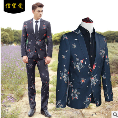 韓版男士西服套裝影樓男裝2019夏季新款主持人禮服舞臺西裝批發