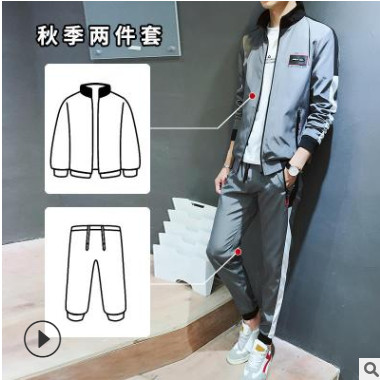 2019秋季新款男式休閑運動套裝韓版潮牌男裝時尚潮流開夾克衫外套