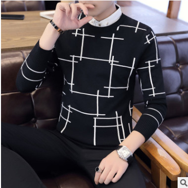 長袖t恤男襯衫領(lǐng)男士毛衣韓版潮流休閑假兩件學(xué)生修身針織打底衫