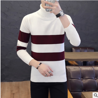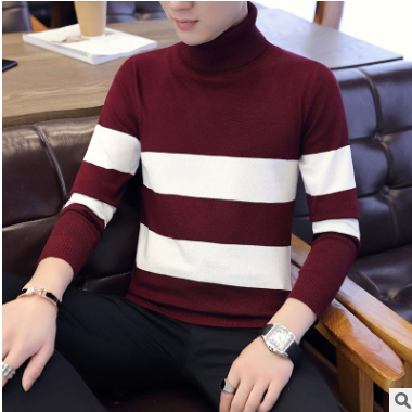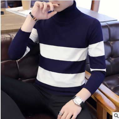 秋冬季高領毛衣男士線衫韓版修身條紋打底針織衫潮流男裝衣服代理